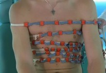 На операционном столе пациент, которого измучили боли в ногах. Причина боли - изношенный тазобедренный сустав. Хирурги удалят сустав и на его место поставят эндопротез, изготовленный из особого пористого металла.