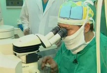 В норме роговица имеет вид полусферы, однако у нашего пациента поверхность роговицы очень плоская. Используя сложнейшую лазерную установку, профессор Коновалов М. Е. придаст роговице правильную форму и вернет пациенту стопроцентное зрение.