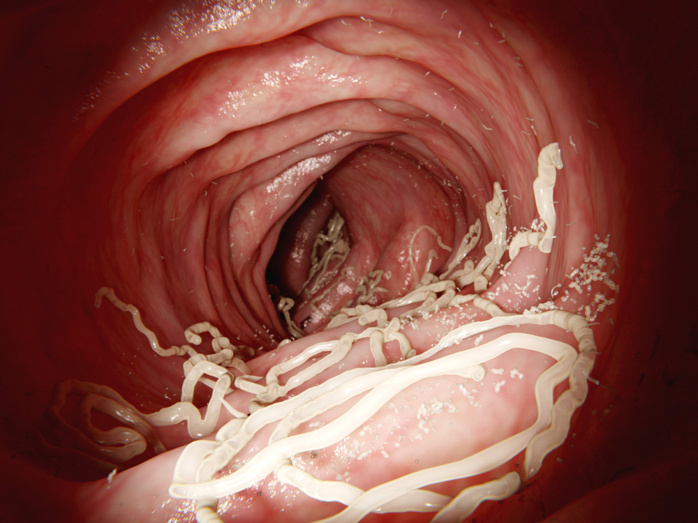 Кишечная инфекция, которую вызывают аскариды — овальные черви до 40см длиной. Они попадают в тонкий кишечник человека вместе с землёй, растениями, загрязнённой едой или водой. Черви могут жить в организме по несколько лет.