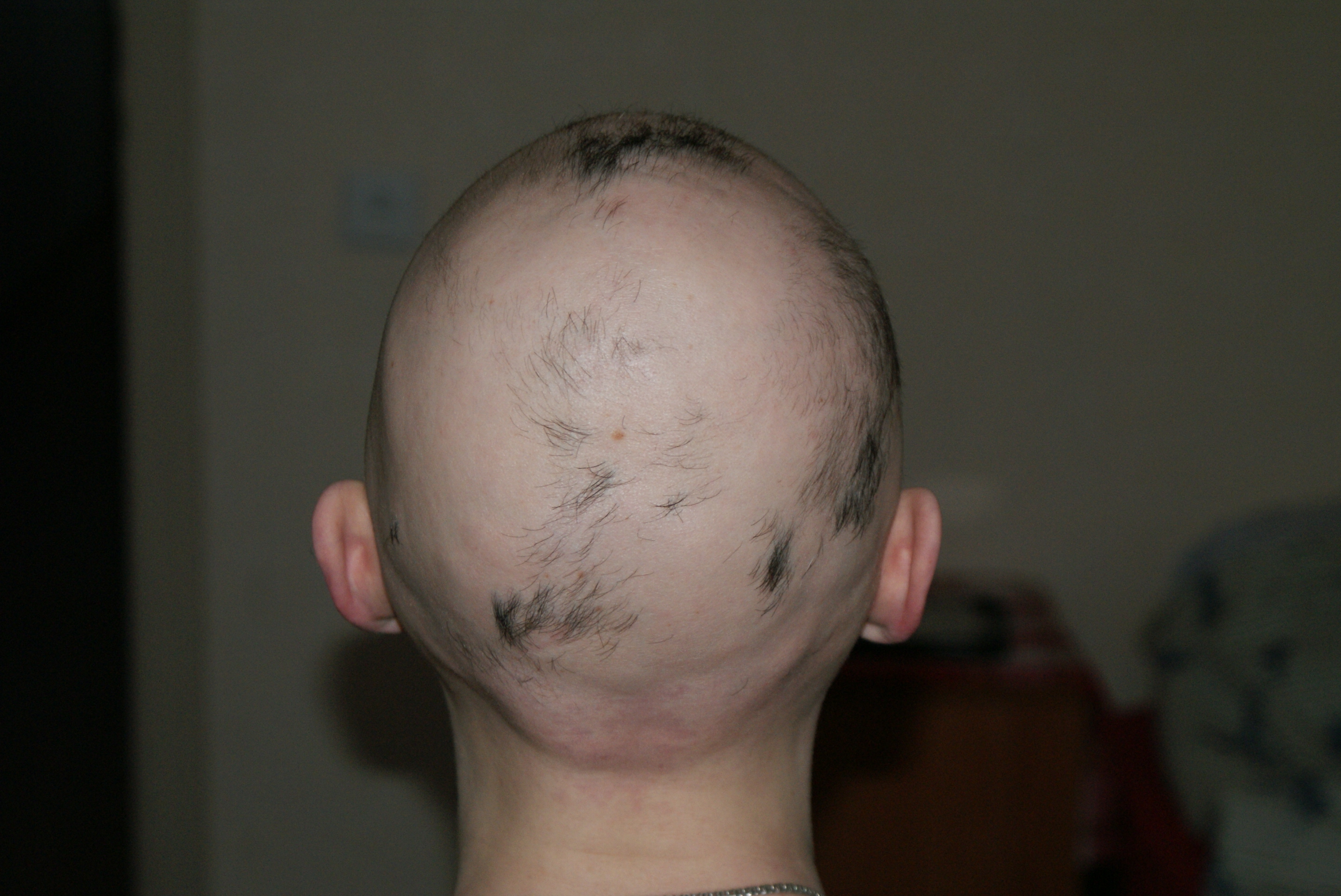 Здравствуйте Елена Васильевна! У моего сына не растут волосы. Сейчас ему 20 лет и голова выглядит приметно как на фотографии. Проблема началась, когда ему было 11 месяцев, стали очагами появляться проплешины. Затем волосы полностью выпали. Луковицы все сохранны, пушок есть, но полноценные волосы не растут. У нас в Челябинске так проблему и не нашли, специалистов и профессоров прошли много, хотя я, как мама, до сих пор ее ищу и надеюсь на разгадку этой "тайны". Возможно ему нельзя было ставить прививки, т.к. у ребенка был гидроцефальный синдром. Ему поставили 3-ю АКДС и против полиомиелита прививки и у него температура под 40 и тревожность после этого были, вскоре после этого волосы и посыпались. Очень надеемся на Вашу помощь.
