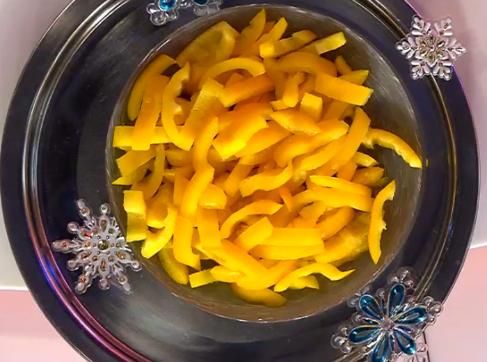 - Нужно мелко нарезать болгарский перец.
