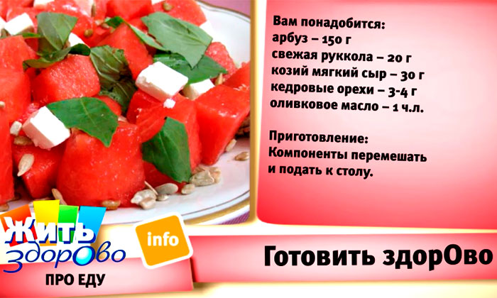 Салат с арбузом можно сделать следующим образом: