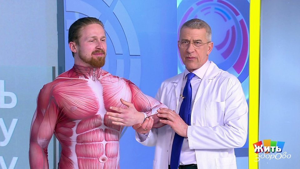 Врач-невролог, мануальный терапевт Дмитрий Шубин показывает упражнение, которое поможет справиться с болью в предплечье и синдромом де Кервена.