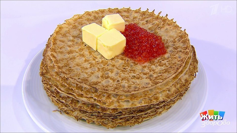 Русские блины довольно тонкие, их обычно едят с маслом и икрой.