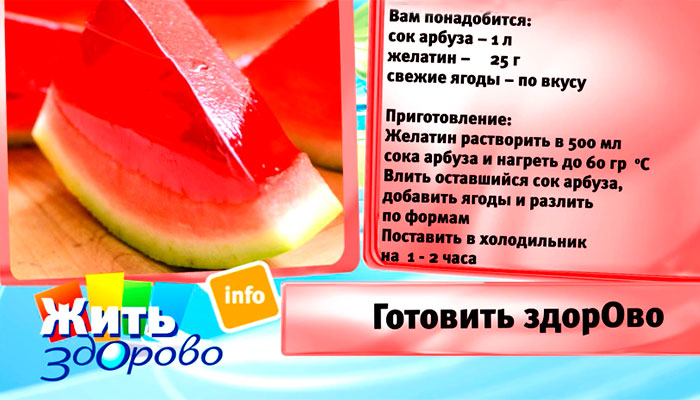 Арбузное желе можно сделать следующим образом: